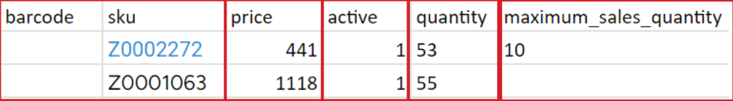If quantity = or < sales buffer → inactivemaximum\_sales\_quantity- integer, optional\ - maximum number of units of a specific product that can be sold by store.