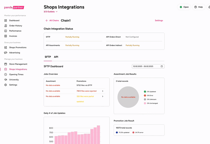 Promotion Files can be viewed in Shops Integration Plugin in Partner Portal. Moreover, you are able to download the files that have been uploaded and see the errors if there are any occurred on the item level.