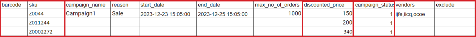 If you want to create the promotion for two or more vendors in the same file, you can use the Multivendor option. For that you can add 2 more columns to the existing file: