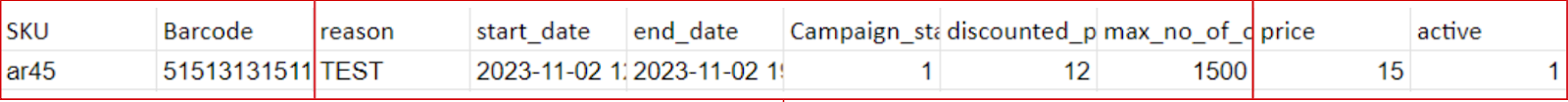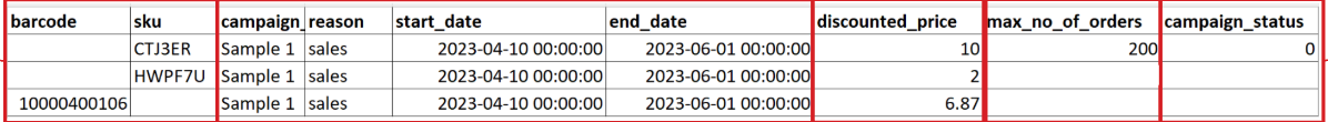YYYY-MM-DDe.g 2025-06-15campaign_status- boolean, optional- either 1 for active or 0 for inactive. If you are not sending the campaign status, system will assume it is ‘1’ (to enable to promotion)promotion_type-enum, requiredsame_item_bundlestrikethrough